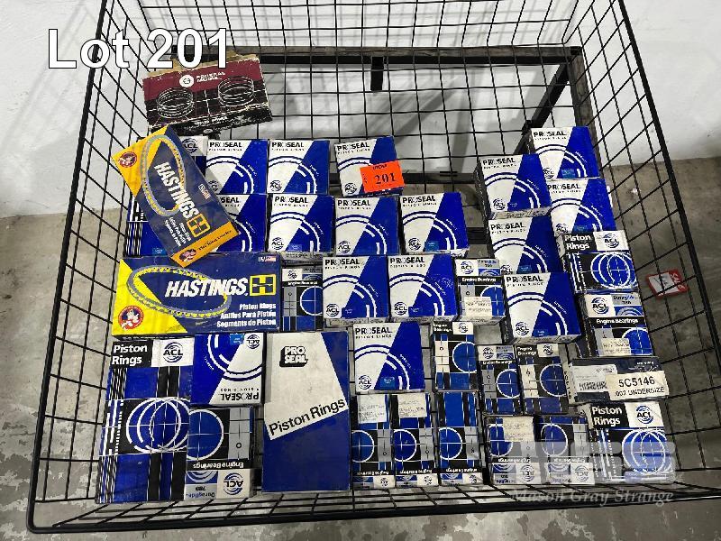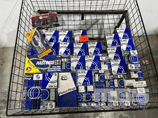LARGE QTY ASSORTED PROSEAL & HASTINGS PISTON RINGS, WIRE STORAGE BASKET & FRAME INCLUDED, 900 x 900mm