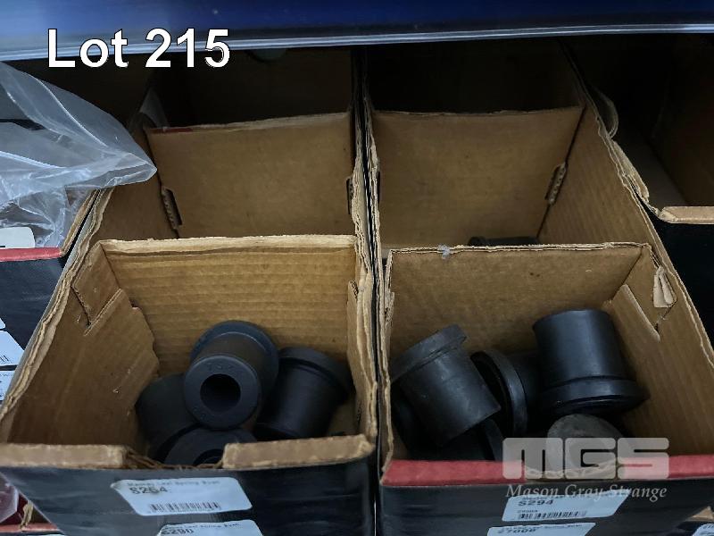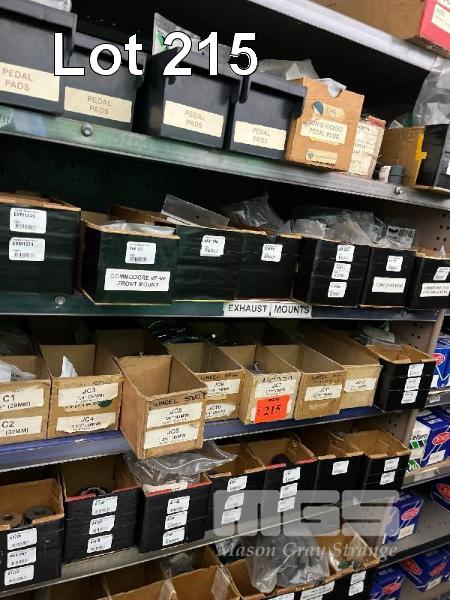 LARGE QTY ASSORTED STAINLESS STEEL EXHAUST HANGERS, RUBBER EXHAUST MOUNTS, PEDAL PADS, BUSHINGS, AIR HOSES, ETC. (CONTENTS OF 1 BAY)