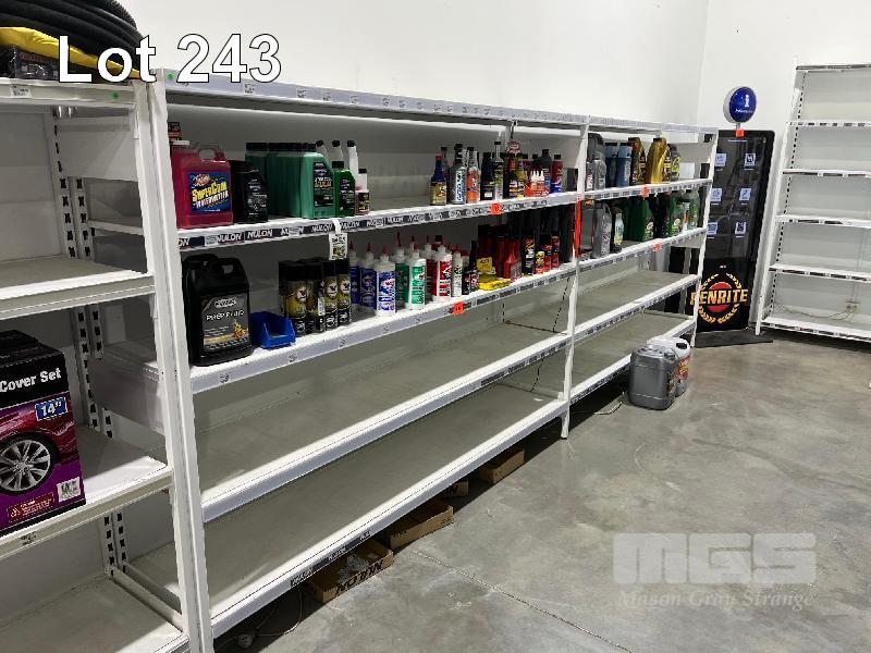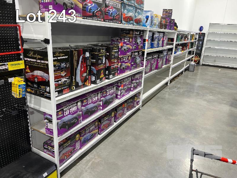 PAIR OF 5 TIER STEEL PRODUCT SHELVING UNITS, EACH UNIT: 4900 x 1800mm (H)
