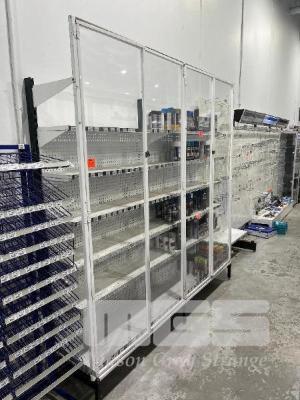 2 x BAYS LOCKABLE PAINT STORAGE RACKS, EACH BAY 1200 x 2200mm (H) WITH 2 x FREE STANDING PAINT STORAGE RACKS, 470 x 1800mm (H)