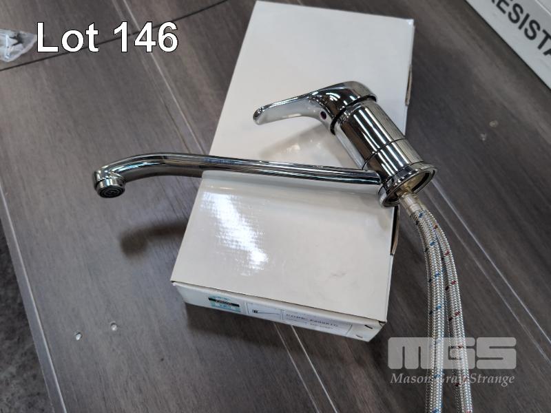 12 X CHROME SINGLE LEVER SINK MIXER TAPS, STRAIGHT SPOUT. ALL NEW. 1 X CARTON.