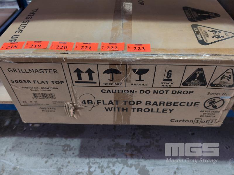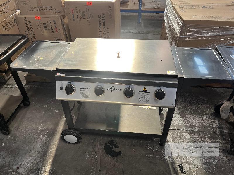 GRILLMASTER MOBILE 4-BURNER FLAT TOP GAS BBQ WITH TROLLEY MOD: 1000-4B NEW IN BOX. ORP $599