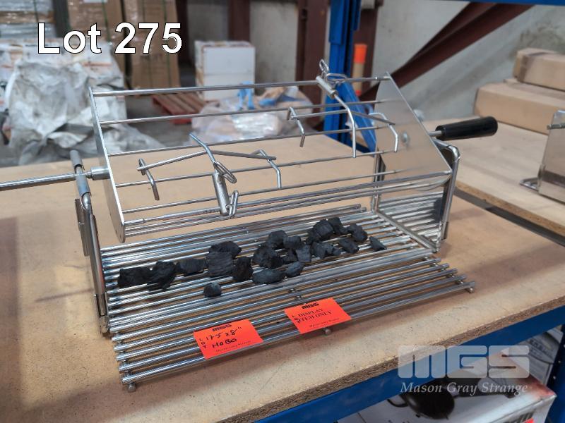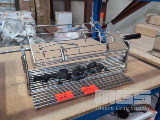 "HOBO" CHARCOAL ROTISSERIE KIT INCLUDES EZQ 17.5 X 8" STAINLESS STEEL ROTISSERIE CRADLE, HANDLE, CLAW CLAMPS & CLAWS AND MOTOR MOUNT. ROTISSERIE STAND. 2 X 304 STAINLESS STEEL COOKING GRIDS ORP $239.00