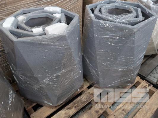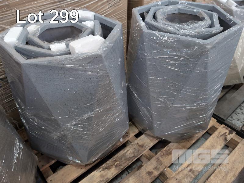 2 X SETS OF 3 CONTEMPORARY PLANTER POTS (NEW IN BOX) STYLE GEO TERRAZZO TALL COLOUR GRAPHITE SIZES (W W H) 2 @ 340 X 340 X 400 MM. 2 @ 480 X 480 X 580 MM. 2 @ 660 X 660 X 770 MM. RRP $449.95 PER SET