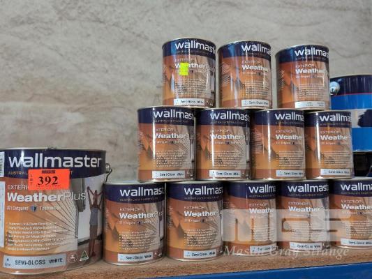 1 X 4 LITRE PAIL ASTEC WALLMASTER WEATHER PLUS EXTERIOR SEMI-GLOSS PAINT. COLOUR WHITE. 12 X 1 LITRE TINS ASTEC WALLMASTER WEATHER PLUS EXTERIOR SEMI-GLOSS PAINT. COLOUR WHITE.