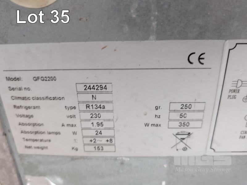 COUNTER DISPLAY FRIDGE, MOD: GFG2200 4 DOOR, 2230mm, STAINLESS STEEL CASED, 240V