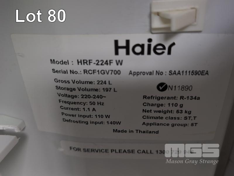 1 X HAIER 224 LITRE UPRIGHT REFRIGERATOR. MODEL HRF-224F W.