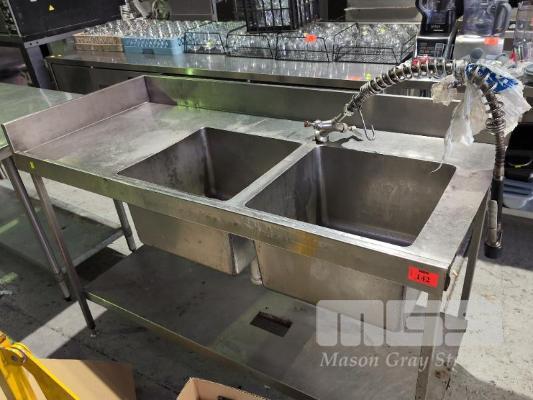 1 X DUAL SINK UNIT WITH RINSE TAP. ** CONDITION UNKNOWN **