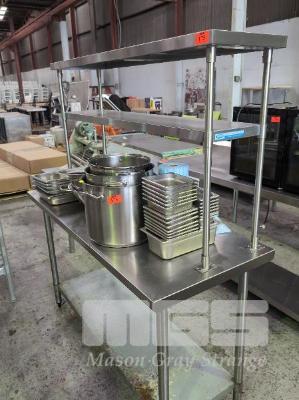 STAINLESS STEEL TOP PREP BENCH, 152 x 61cm WITH 2 TIER OVERSHELF, RUSTED GALV BOTTOM SHELF
