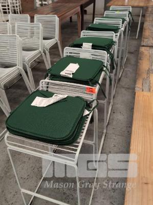 16 X STOOLS, WHITE WIRE COATED WITH CUSHIONS.
