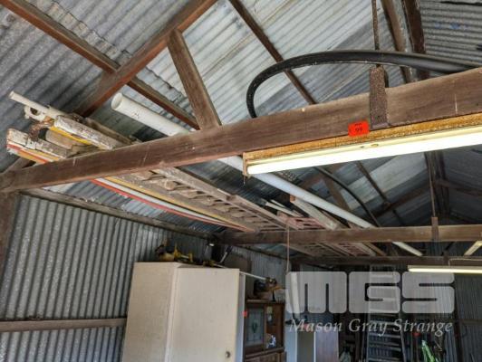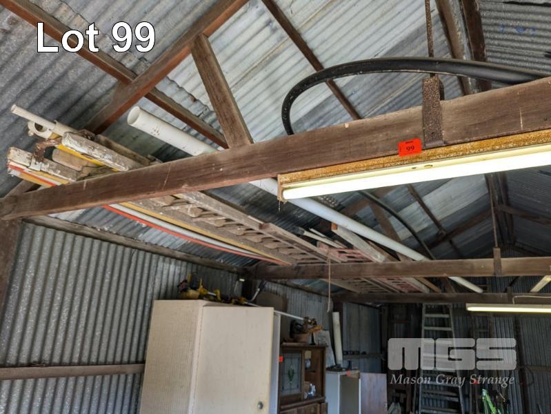 TIMBER LADDERS, PVC PIPE LENGTHS, CORRUGATED IRON & ASSORTED SHEET IRON LENGTHS, ETC (CONTENTS OF SHED RAFTERS)