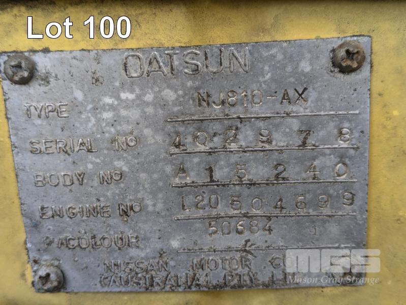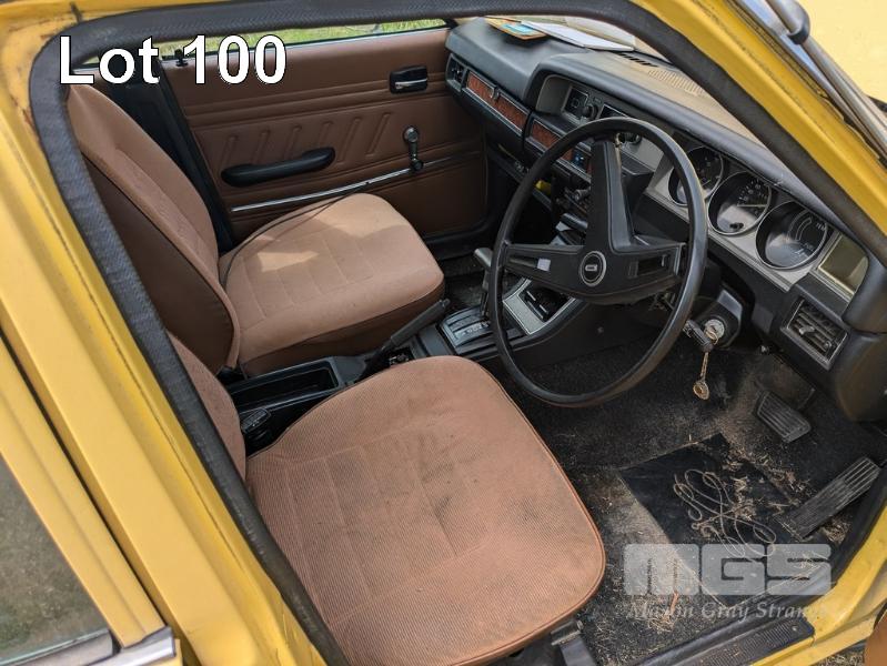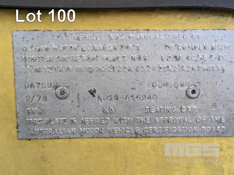 1978 NISSAN 200B GX SEDAN REG: SCX 485 (EXPIRED) ODO: 214,968kms SHOWING 4 CYLINDER PETROL, AUTOMATIC TRANSMISSION, YELLOW DUCO, 4 DOORS, POWER WINDOWS, CHASSIS: 810 ASX 3007 BEIGE VINYL ROOF ORIGINAL BARN FIND CONDITION RUNS & DRIVES (WITH 2 KEY/S, WITH OWNER'S MANUAL, WITH SERVICE BOOKS)