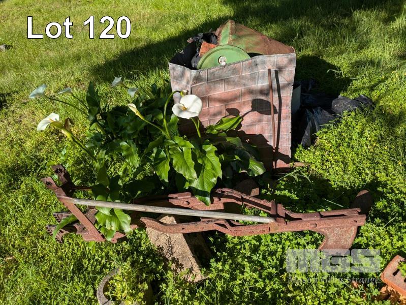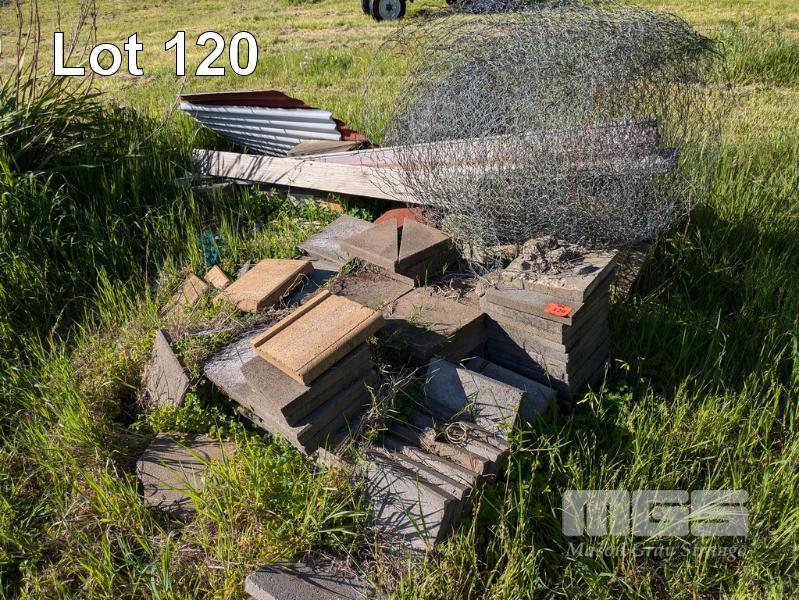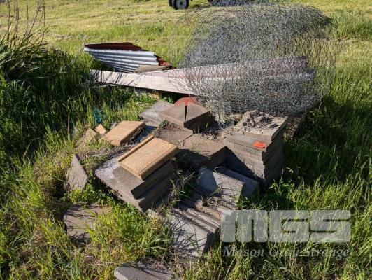 ASSORTED SCRAP METAL, PAVERS, CONCRETE BLOCKS, BRICKS & BELT DRIVEN CEMENT MIXER, 3 x PILES