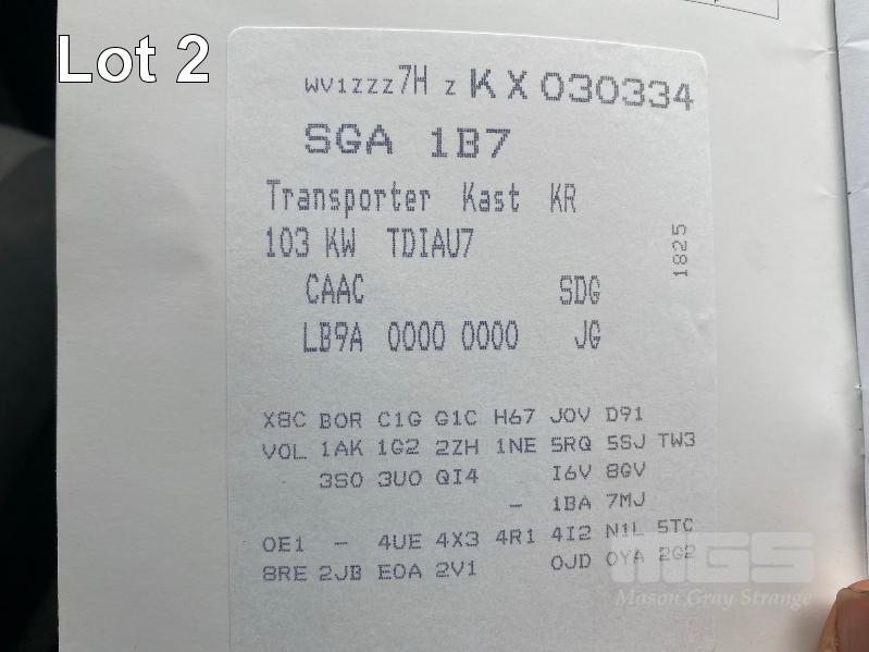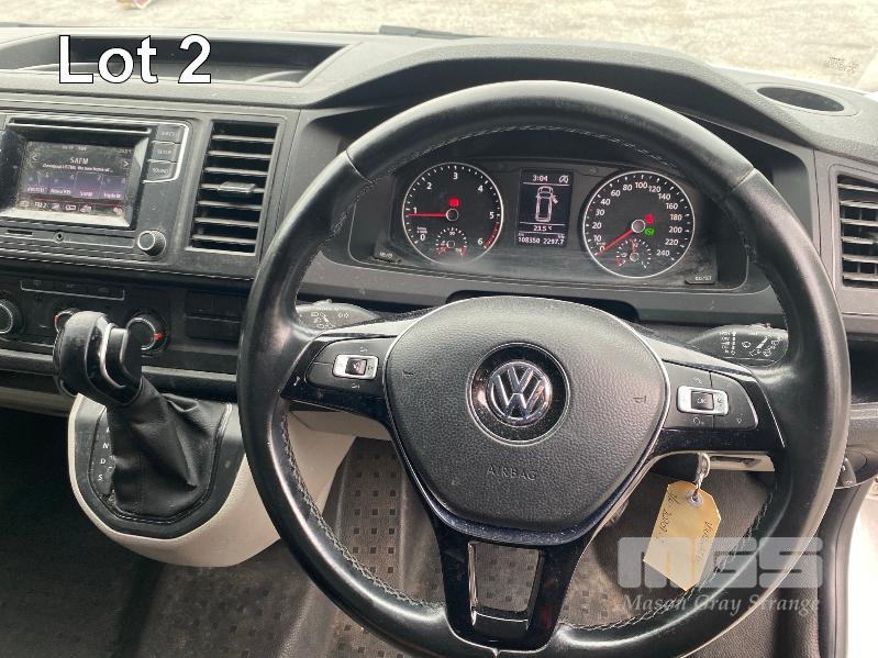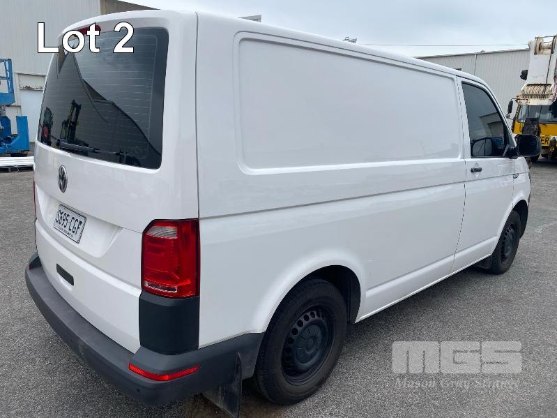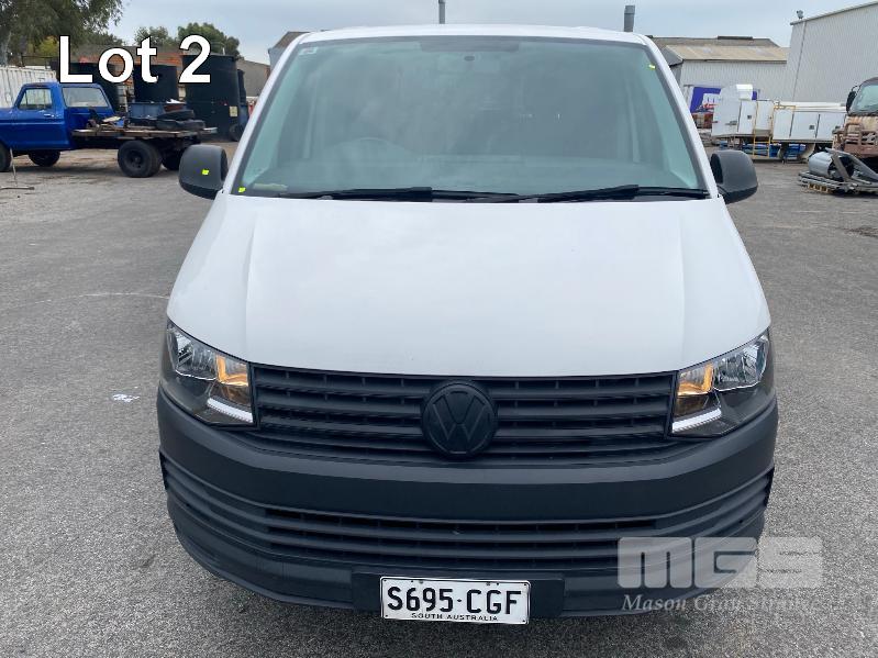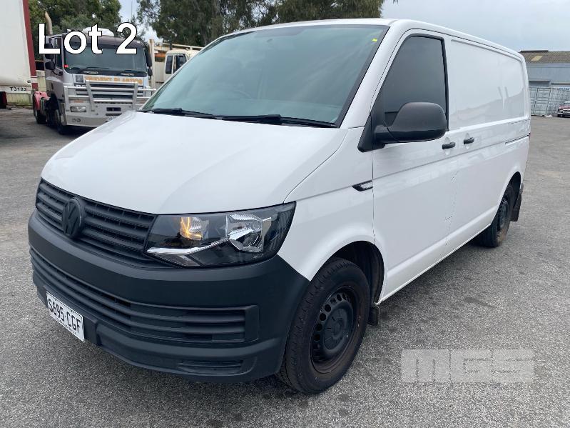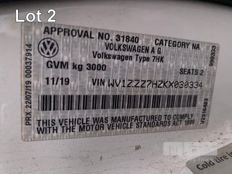 2019 VOLKSWAGEN TRANSPORTER TDIAU7 VAN REG: S695 CGF VIN: WV1ZZZ7HZKX030334 ODO: 108,350kms SHOWING 2.0 LITRE DIESEL ENGINE, 103kw, AUTOMATIC TRANSMISSION, WHITE DUCO, 2 DOORS, 2 SEAT, AIR BAG, AIR CON, BLUETOOTH, CARGO BARRIER, CD PLAYER, CENTRAL LOCKING, IMMOBILISER, POWER STEERING, POWER WINDOWS, SHELVING, SPARE WHEEL, DUAL BATTERIES & REPCO 1000w INVERTER REAR MOUNT WORK BENCH KEY #52 (WITH 2 KEY/S, WITH OWNER'S MANUAL, WITH SERVICE BOOKS)
