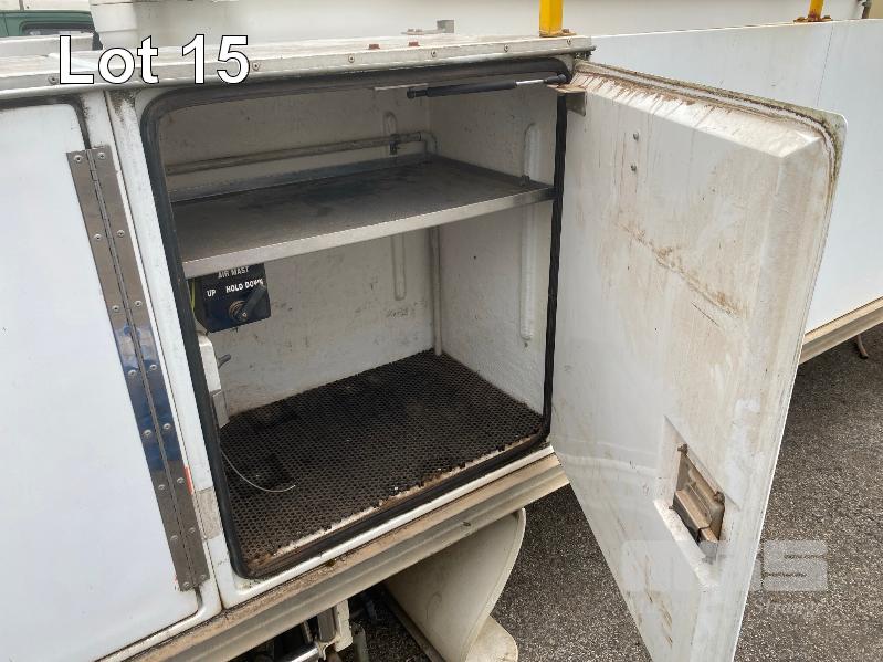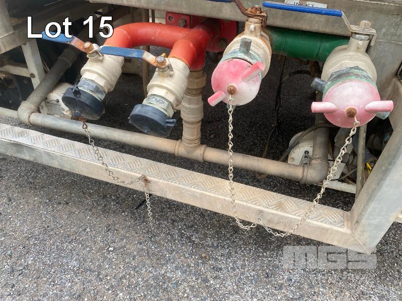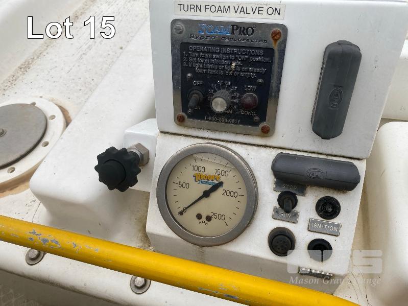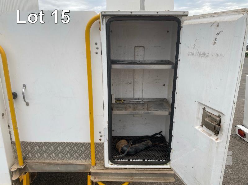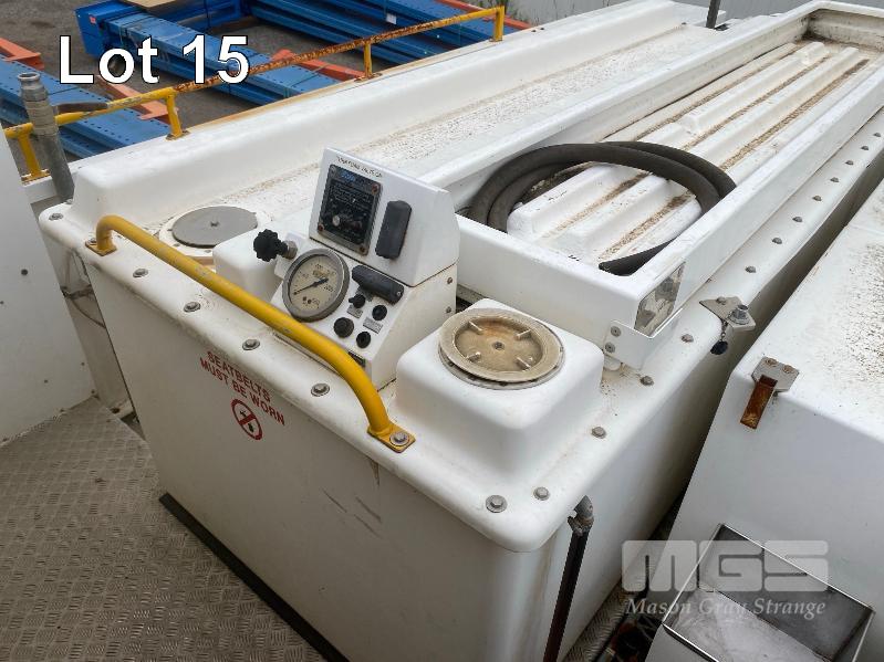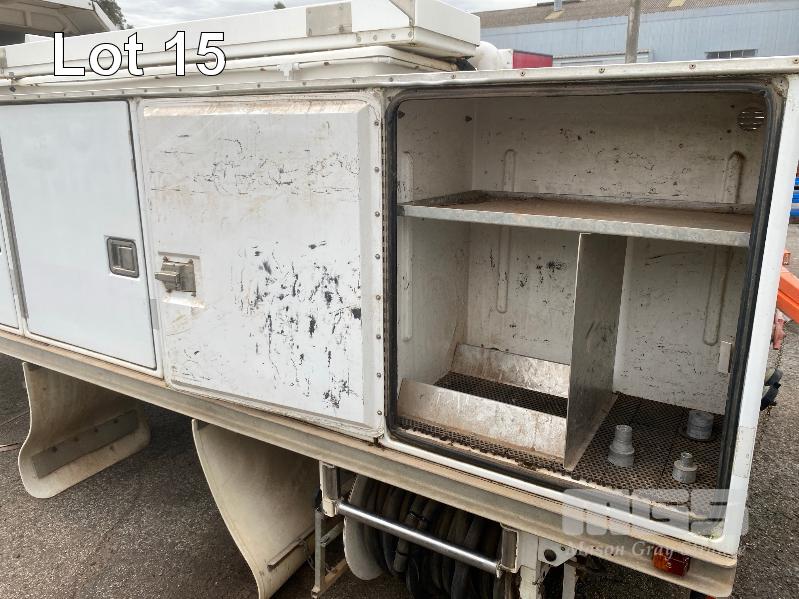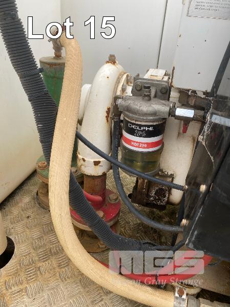 FIRE FIGHTING TRUCK BODY/REAR TANK, PUMP & STORAGE UNITS, MOORE ENGINEERING COMPRISING: GALV STEEL TRAY FITTED WITH FIBREGLASS WATER TANK, SIZE: 2700 x 1200 x 850mm (H) WATER PUMP POWERED BY DEUTZ DIESEL ENGINE HOURS: 450 SHOWING 2 x HOSE REELS, FIRE HOSE MANIFOLDS & COUPLINGS, 8 x FIBREGLASS STORAGE COMPARTMENTS, FRONT MOUNT 3 PERSON SEATING ENCLOSURE, ETC SIZE: 4900 x 2400 x 2450mm (H)