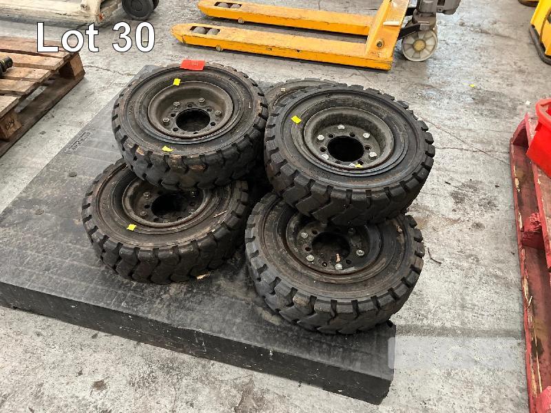 6 x SOLID FORKLIFT TYRES & RIMS, 18x7-8