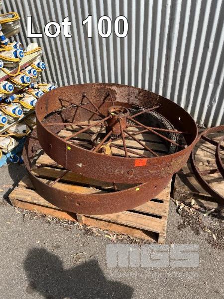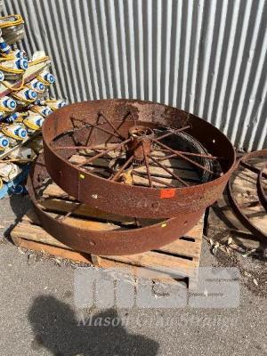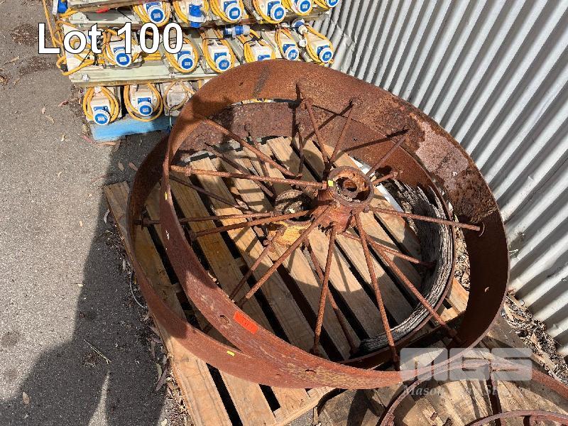 2 x VINTAGE STEEL SPOKED WAGON WHEELS,