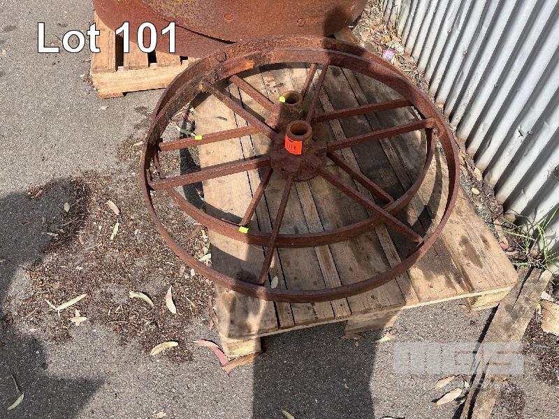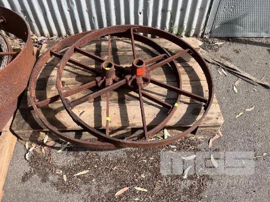 2 x VINTAGE STEEL SPOKED WAGON WHEELS,