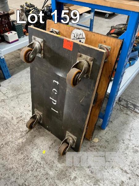 2 x PIANO TROLLIES, HEAVY DUTY, CASTORS & TIMBER BASE