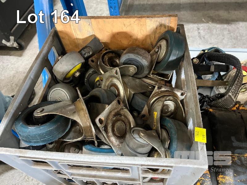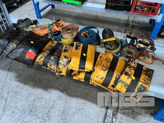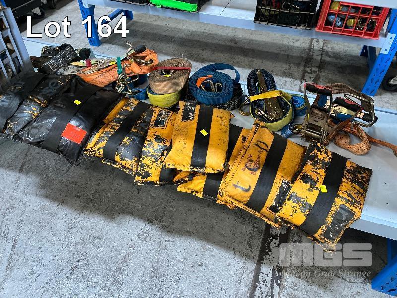 RATCHET STRAPS, 1 x MILK CRATE OF CASTOR WHEELS, 11 x SHOT BAG WEIGHTS, 10kg EACH