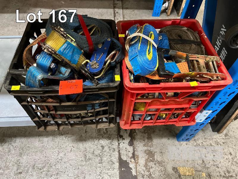 LARGE QUANTITY LOAD BINDER RATCHET STRAPS IN 2 x MILK CRATES