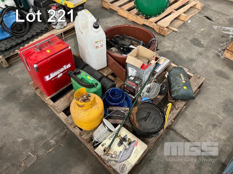 CAMPING GEAR INCLUDING CAST OVEN, ESKY, WATER CAN, ETC