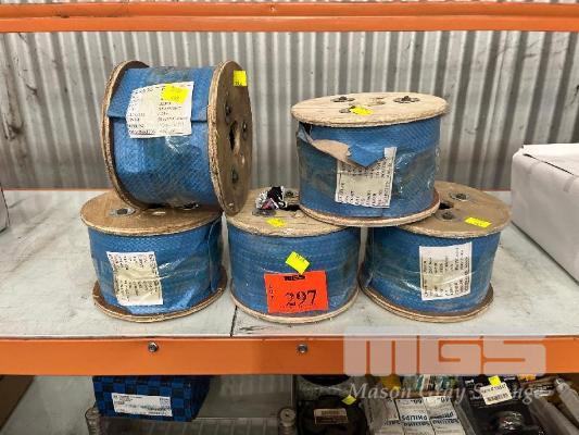 5 x ROLLS PVC WIRE CABLE. BLUE COATED