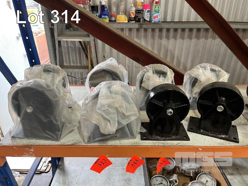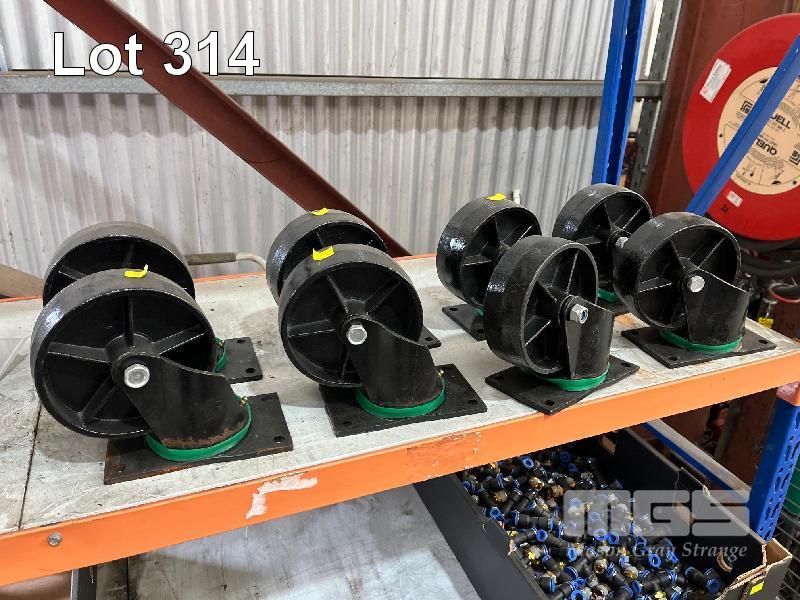 & 8 x FIXED CASTOR WHEELS, BLACK, 150mm (D), HEAVY DUTY
