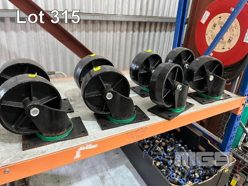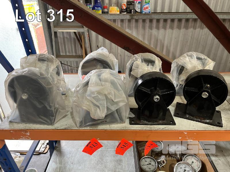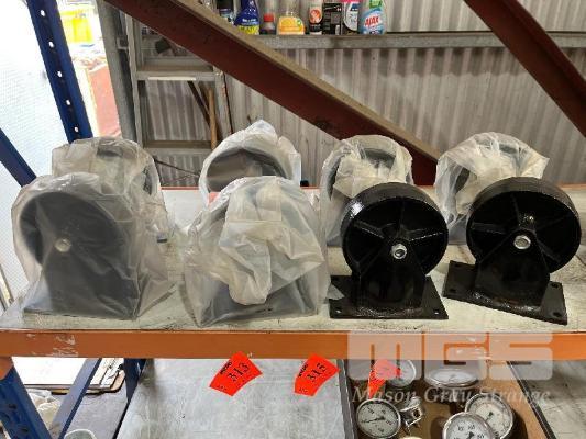 & 8 x FIXED CASTOR WHEELS, BLACK, 150mm (D), HEAVY DUTY