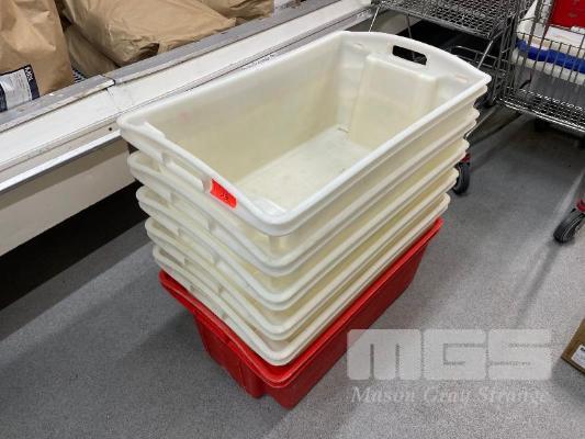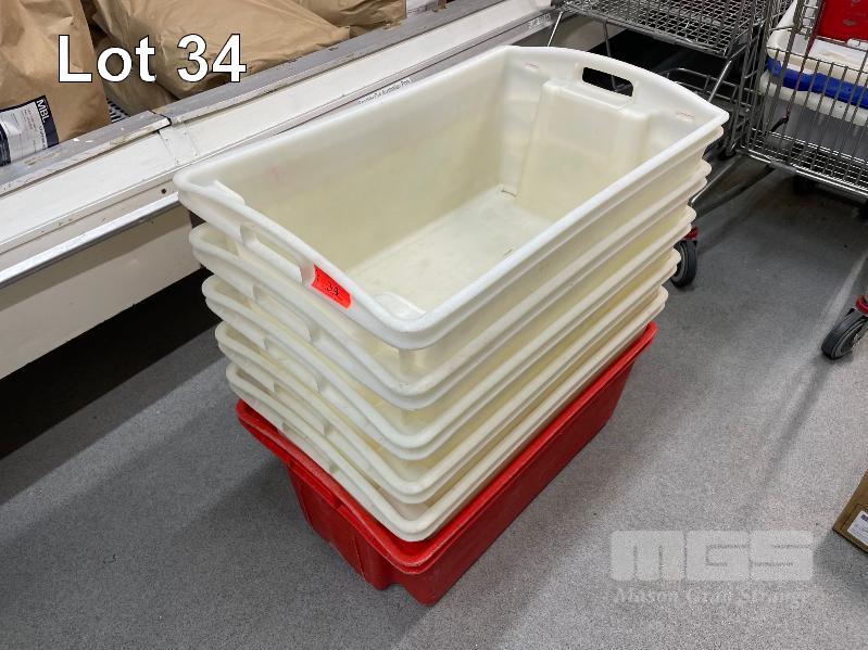 6 x PVC TUBS, 3 x STEEL FRAME TUB TROLLEYS
