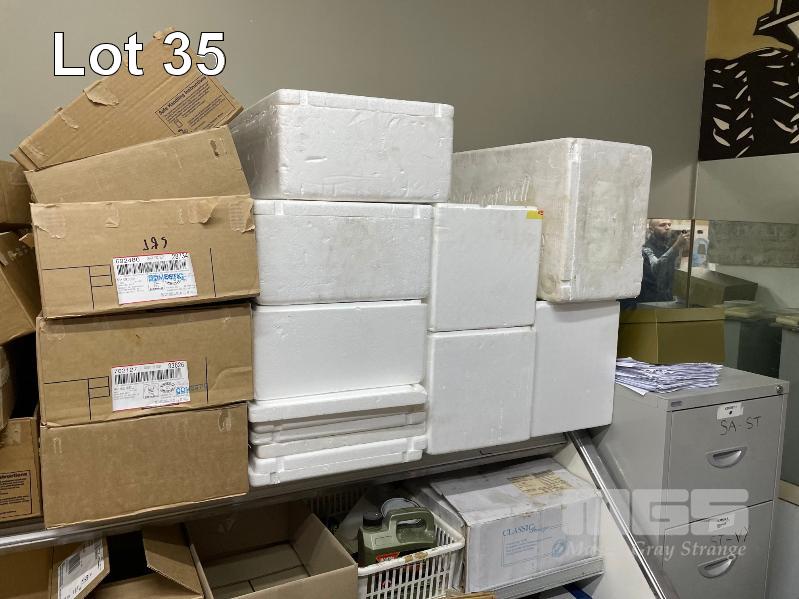 LARGE QTY STYROFOAM PRODUCE TRAYS, LARGE QTY CARDBOARD BOXES, LARGE QTY STYROFOAM COOLERS