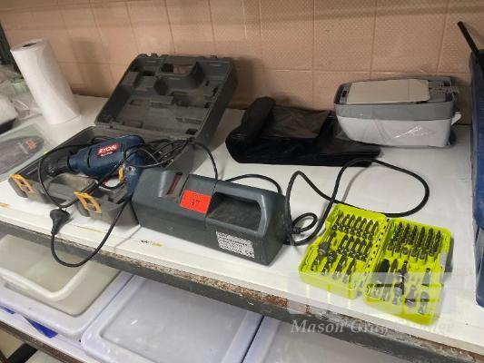 RYOBI 240V DRILL WITH RYOBI DRILL BIT SET & NIREY KNIFE SHARPENER, 240V