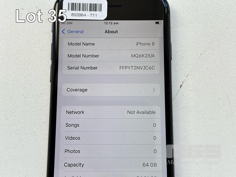 APPLE iPHONE 8, 64GB, SPACE GREY, MODEL MQ6K2X/A, BATTERY HEALTH 93% (NO CABLE, NO CHARGER) S/N:FFPYT2NVJC6C
