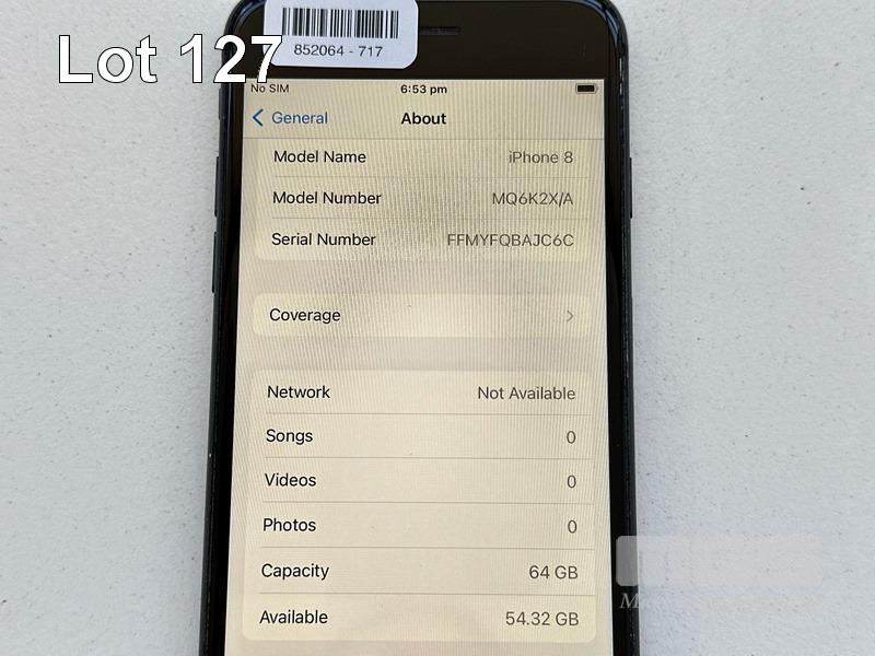 APPLE iPHONE 8, 64GB, SPACE GREY, MODEL MQ6K2X/A, BATTERY HEALTH 85% (NO CABLE, NO CHARGER) S/N:FFMYFQBAJC6C
