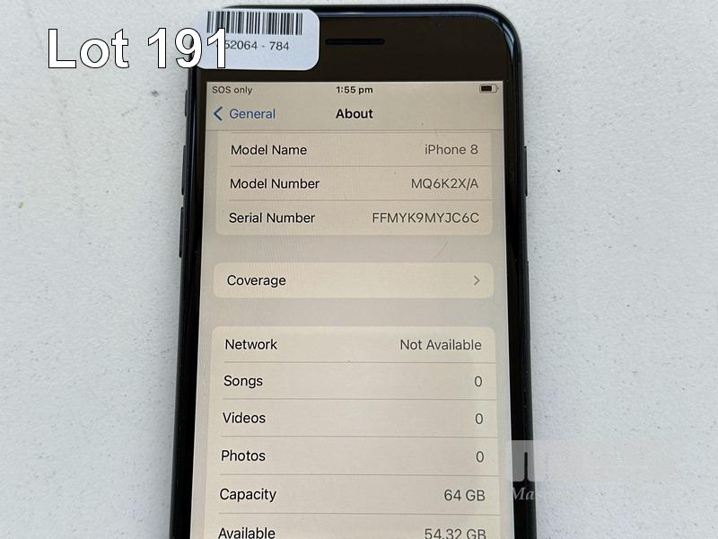 APPLE iPHONE 8, 64GB, SPACE GREY, MODEL MQ6K2X/A, BATTERY HEALTH 87% (NO CABLE, NO CHARGER) (NOTE: SCRATCHES ON SCREEN) S/N:FFMYK9MYJC6C