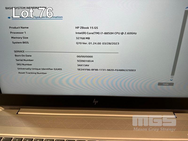 LAPTOP, HP ZBOOK 15 G5 MOBILE WORKSTATION, CORE i7 8850H (8TH GEN) @ 2.6GHz, 32GB DDR4 RAM, 512GB NVMe M.2 SSD, 15.6" WIDESCREEN (1920x1080), 4GB NVIDIA QUADRO P2000 VIDEO, Wi-Fi, BLUETOOTH, WINDOWS 11 PRO INSTALLED (NO POWER SUPPLY) S/N:5CD9010DJ4