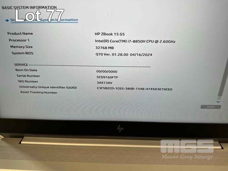 LAPTOP, HP ZBOOK 15 G5 MOBILE WORKSTATION, CORE i7 8850H (8TH GEN) @ 2.6GHz, 32GB DDR4 RAM, 512GB NVMe M.2 SSD, 15.6" WIDESCREEN (1920x1080), 4GB NVIDIA QUADRO P2000 VIDEO, Wi-Fi, BLUETOOTH, WINDOWS 11 PRO INSTALLED (NO POWER SUPPLY) S/N:5CD9160FTF