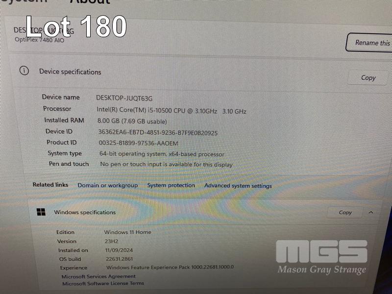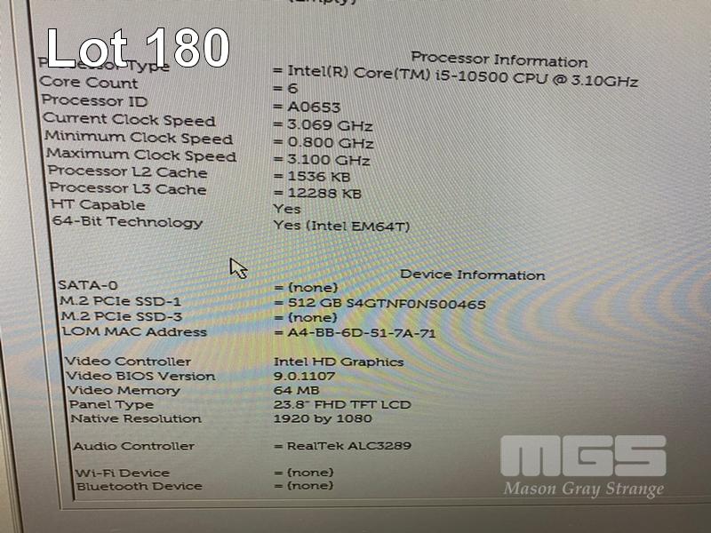 ALL-IN-ONE PC, DELL OPTIPLEX 7480, CORE i5 10500 (10TH GEN) @ 3.1GHz, 8GB DDR4 RAM, 512GB NVMe M.2 SSD, INBUILT 23.8" FHD WIDESCREEN (1920x1080), INTEL HD VIDEO, WEBCAM, 5 x USB, 1 x USB-C, WINDOWS 11 HOME INSTALLED, KEYBOARD & MOUSE S/N:4Y29X63