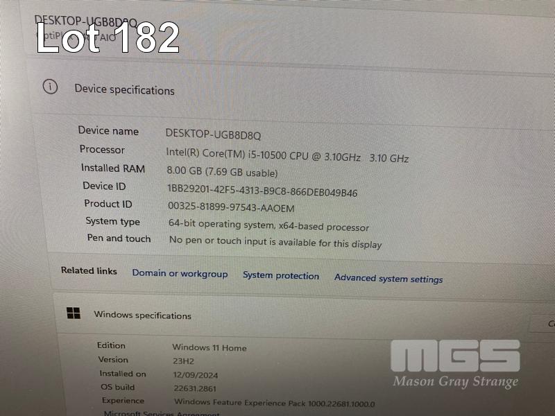 ALL-IN-ONE PC, DELL OPTIPLEX 7480, CORE i5 10500 (10TH GEN) @ 3.1GHz, 8GB DDR4 RAM, 512GB NVMe M.2 SSD, INBUILT 23.8" FHD WIDESCREEN (1920x1080), INTEL HD VIDEO, WEBCAM, 5 x USB, 1 x USB-C, WINDOWS 11 HOME INSTALLED, KEYBOARD & MOUSE S/N:4Y42X63