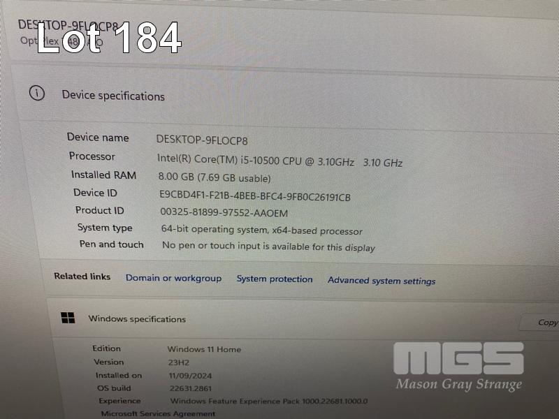 ALL-IN-ONE PC, DELL OPTIPLEX 7480, CORE i5 10500 (10TH GEN) @ 3.1GHz, 8GB DDR4 RAM, 512GB NVMe M.2 SSD, INBUILT 23.8" FHD WIDESCREEN (1920x1080), INTEL HD VIDEO, WEBCAM, 5 x USB, 1 x USB-C, WINDOWS 11 HOME INSTALLED, KEYBOARD & MOUSE S/N:4Y52X63