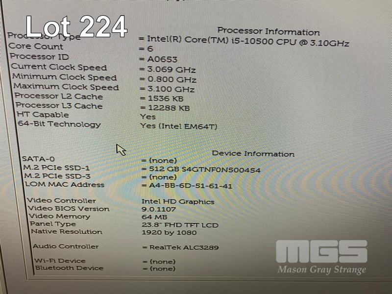 ALL-IN-ONE PC, DELL OPTIPLEX 7480, CORE i5 10500 (10TH GEN) @ 3.1GHz, 8GB DDR4 RAM, 512GB NVMe M.2 SSD, INBUILT 23.8" FHD WIDESCREEN (1920x1080), INTEL HD VIDEO, WEBCAM, 5 x USB, 1 x USB-C, WINDOWS 11 HOME INSTALLED, KEYBOARD & MOUSE S/N:4Y41X63