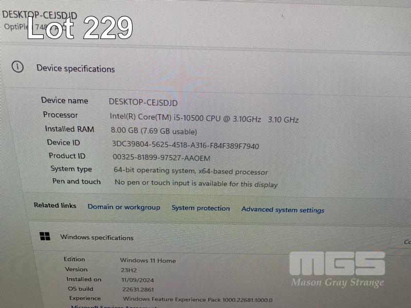 ALL-IN-ONE PC, DELL OPTIPLEX 7480, CORE i5 10500 (10TH GEN) @ 3.1GHz, 8GB DDR4 RAM, 512GB NVMe M.2 SSD, INBUILT 23.8" FHD WIDESCREEN (1920x1080), INTEL HD VIDEO, WEBCAM, 5 x USB, 1 x USB-C, WINDOWS 11 HOME INSTALLED, KEYBOARD & MOUSE S/N:4Y05X63