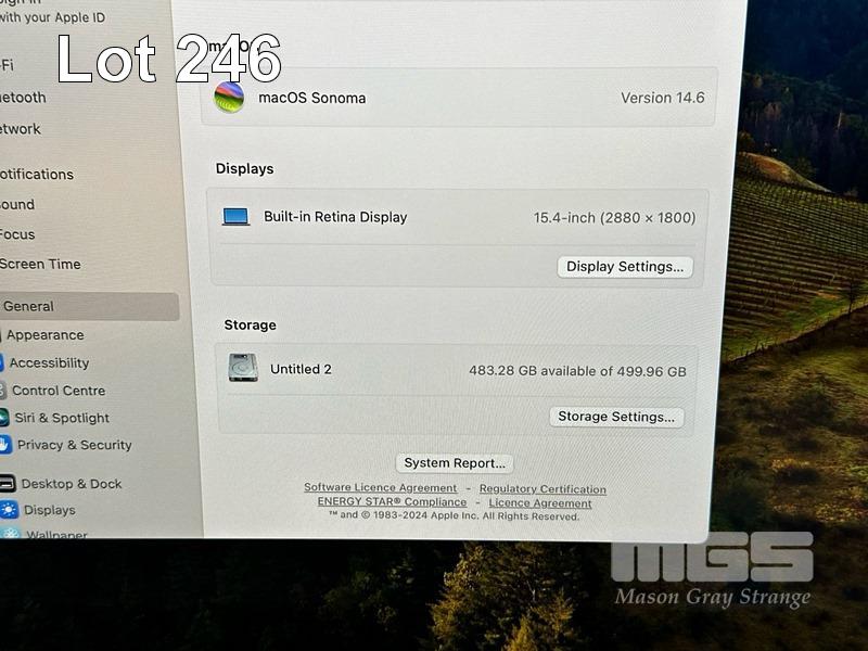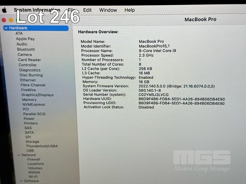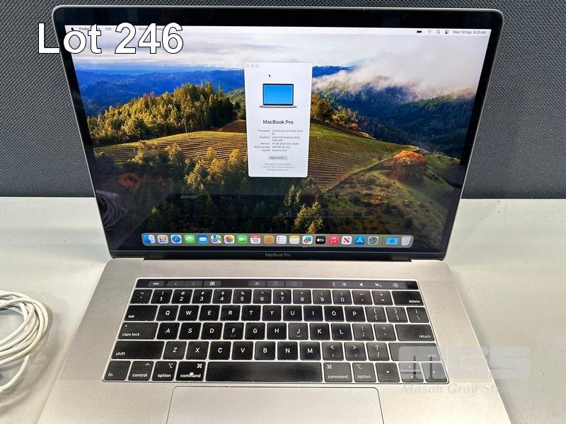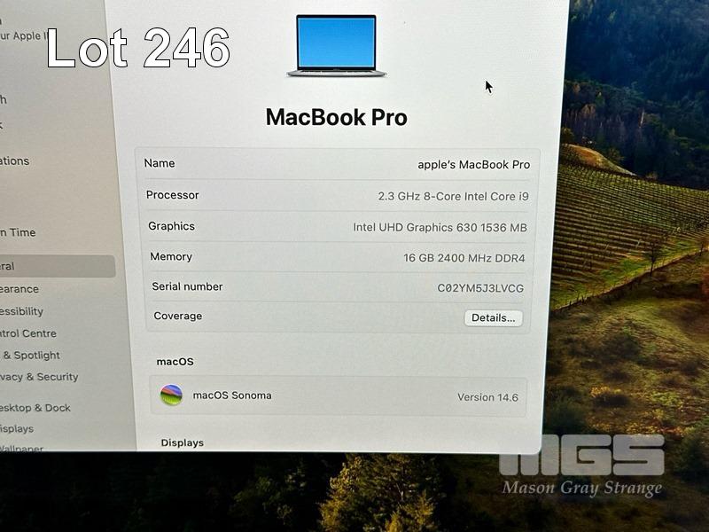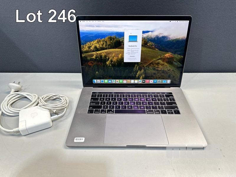 LAPTOP, APPLE MACBOOK PRO (A1990), CORE i9 9880H (9TH GEN) @ 2.3GHz, 16GB DDR4 RAM, 512GB SSD, 15.4" RETINA DISPLAY (2880x1800), INTEL UHD GRAPHICS 630, Wi-Fi, BLUETOOTH, MAC OS 14 INSTALLED & USB-C POWER SUPPLY S/N:C02YM5J3LVCG