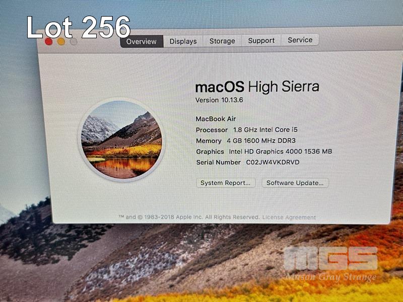 LAPTOP, APPLE MACBOOK AIR (A1466), CORE i5 3427U (3RD GEN) @ 1.8GHz, 4GB DDR3 RAM, 256GB SSD, 13.3" DISPLAY (1440x900), INTEL HD GRAPHICS 4000, Wi-Fi, BLUETOOTH, MAC OS 10.13 INSTALLED & POWER SUPPLY