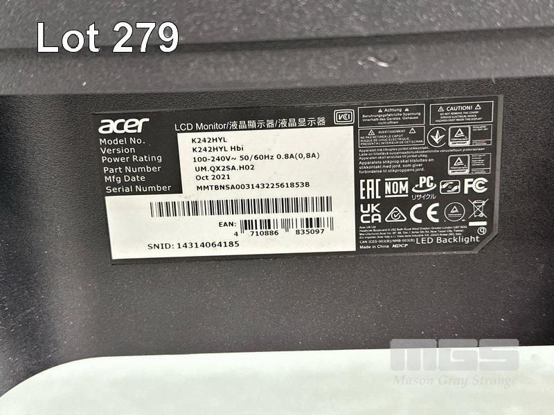 MONITOR, ACER K242HL 24" LED-BL LCD WIDESCREEN, HDMI, VGA (WITH CABLES) S/N:14314064185