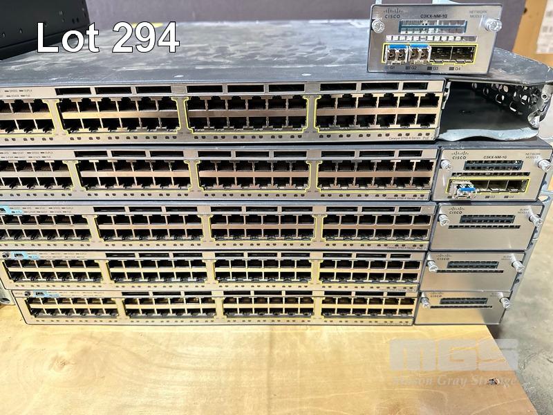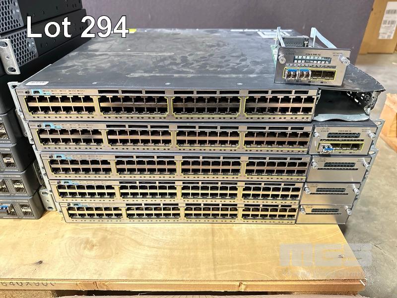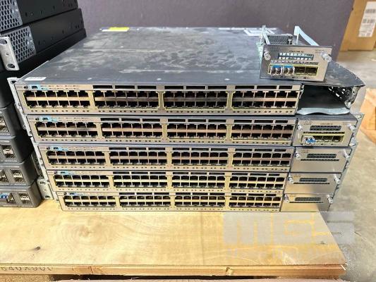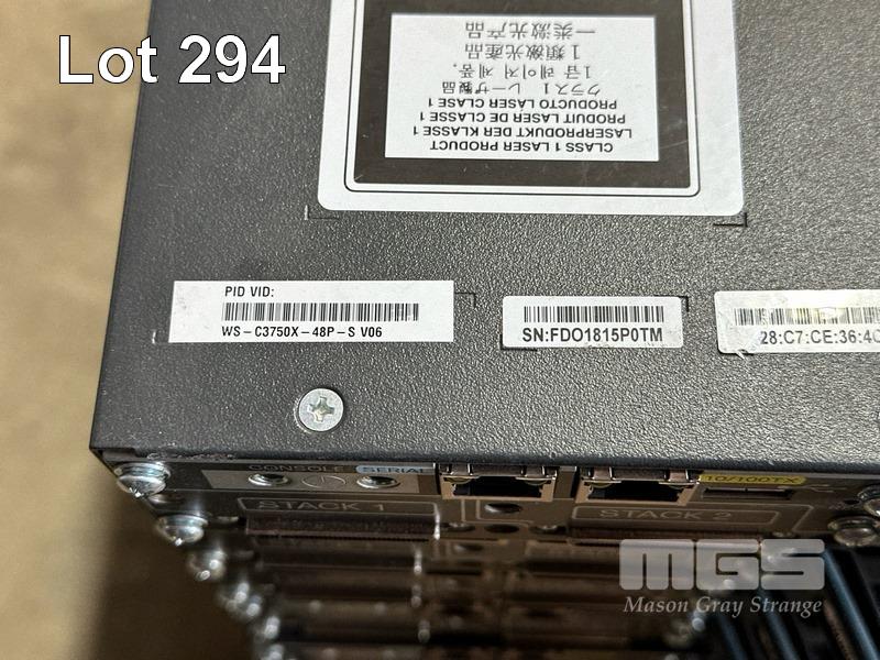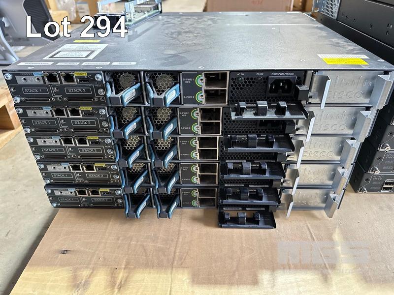 5 x CISCO CATALYST 3750-X SERIES 48-PORT SWITCHES, WS-C3750X-48P-S V06 EACH WITH STACK CABLES & IEC-C15 NOTCH POWER CABLES