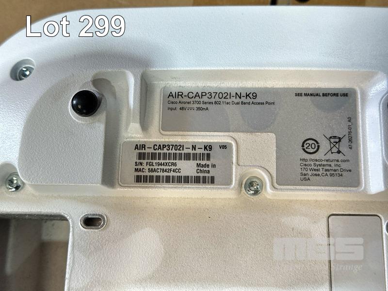 20 x CISCO AIRONET 3700 SERIES WIRELESS ACCESS POINTS, AIR-CAP3702I-N-K9 WITH BRACKETS