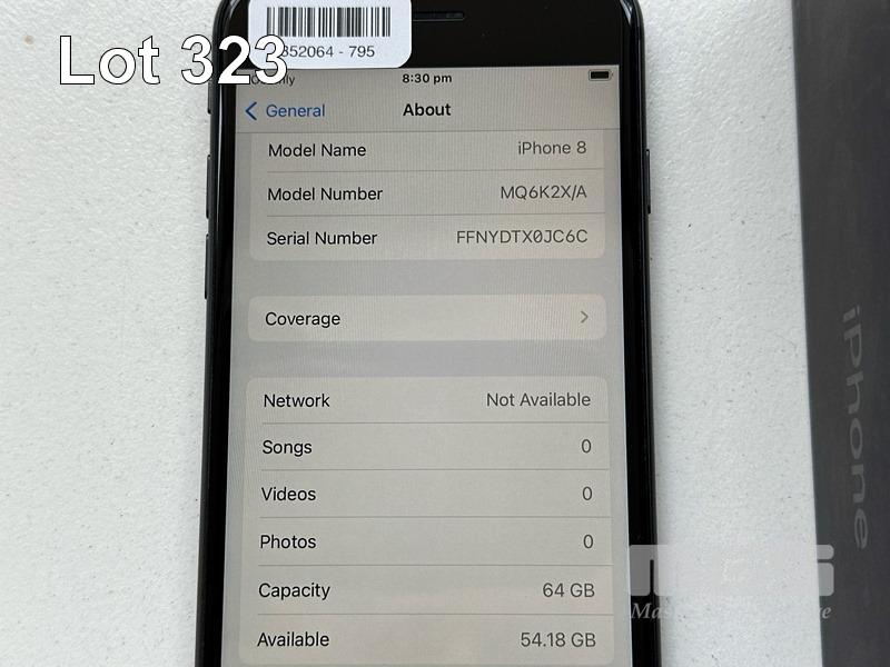 APPLE iPHONE 8, 64GB, SPACE GREY, MODEL MQ6K2X/A, BATTERY HEALTH 95% (NO CABLE, NO CHARGER) S/N:FFNYDTX0JC6C