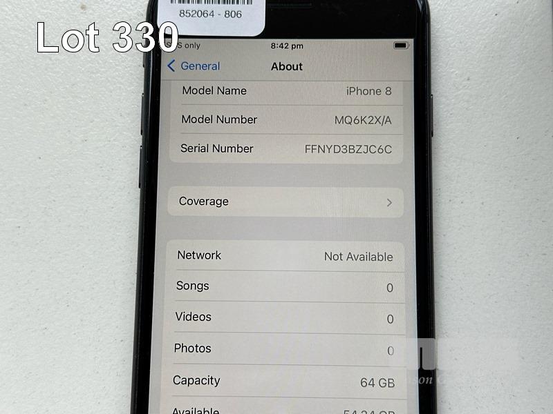 APPLE iPHONE 8, 64GB, SPACE GREY, MODEL MQ6K2X/A, BATTERY HEALTH 92% (NO CABLE, NO CHARGER) S/N:FFNYD3BZJC6C