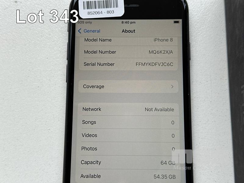 APPLE iPHONE 8, 64GB, SPACE GREY, MODEL MQ6K2X/A, BATTERY HEALTH 84% (NO CABLE, NO CHARGER) S/N:FFMYKDFVJC6C